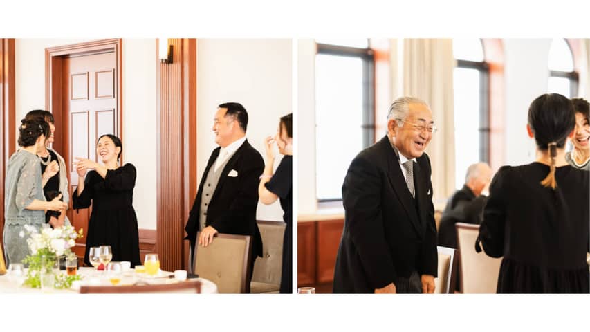 メーヤー・ライニンガーでは【ファミリーミート】の時間をご用意。おふたりの晴れ姿を、一番見て欲しい親御様に。挙式が始まる前に、親御様とのかけがえのない時間をお過ごしいただきます。