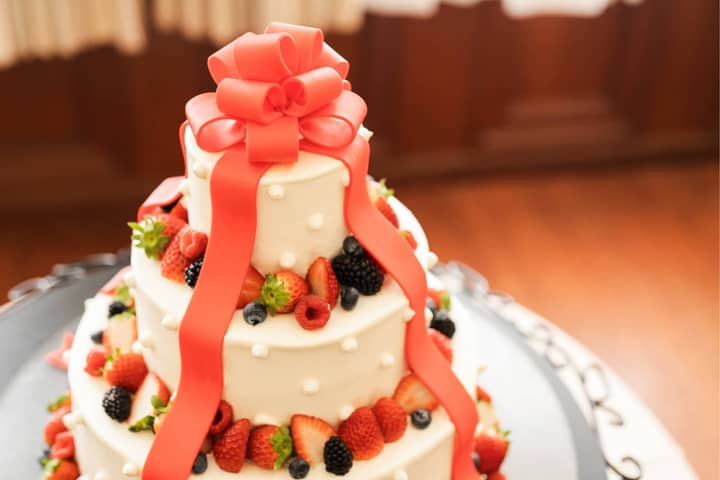 デザインからオリジナルでこだわってくださった、とってもかわいいウエディングケーキもゲストの方に好評でした。