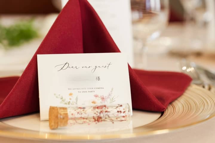 席札やメッセージカードもご準備いただき、おふたりのご入場前にゲストの方が嬉しそうに見られているのが印象的でした。