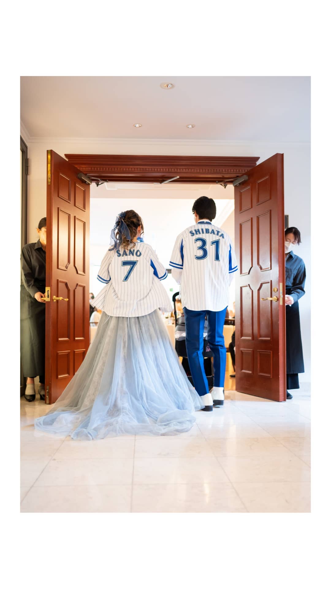 お色直しのご入場は、おふたりの趣味である野球のユニフォームを着て。アットホームな雰囲気でゲストとも盛り上がりました。