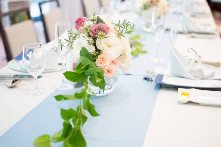 披露宴会場は好きな色(水色)をメインでコーディネートしました。