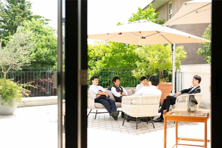 おふたりのゲストだけでご利用いただけるウェルカムスペースは、テラスも。お待合の時間から、ゲストの方同士、肩肘はらずにゆったりくつろいでいただけます。